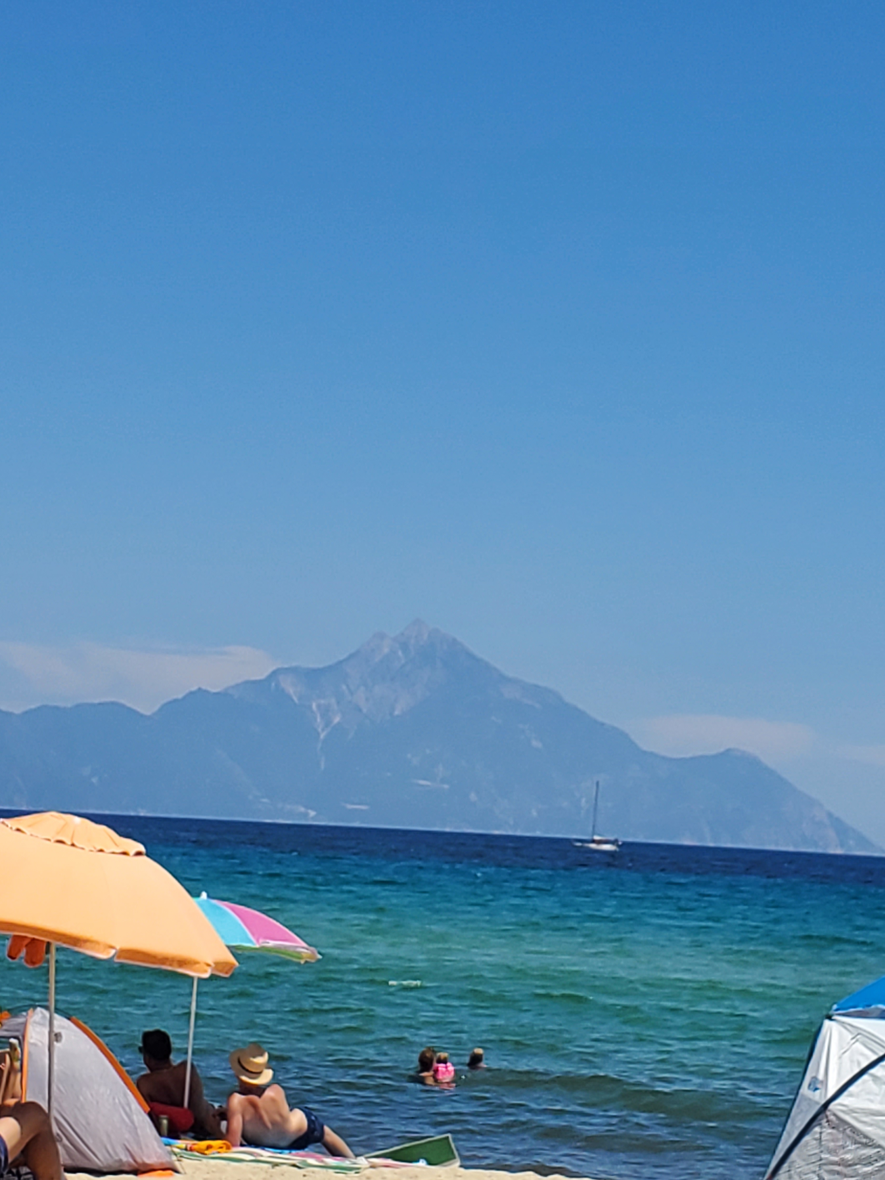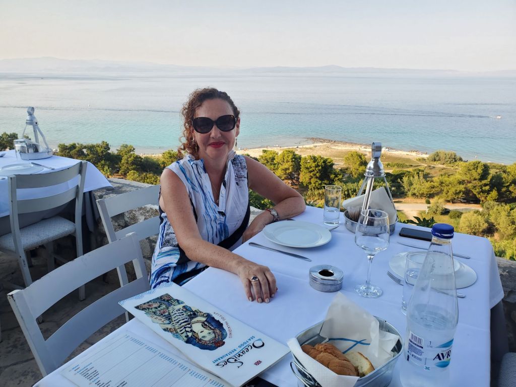 1. Athytos- tiny beach. One somewhat upscale but expensive beach club and one restaurant with sad looking beds requiring 90 euro minimum in consumption. The town itself is up the mountain so unless you have a car it’s a long climb up. The town is very cute with bunch of good seafood restaurants with a view on the upper promenade with gorgeous sea view. We ate at Oceanides. Good but not fab. The view makes up for meritocracy.